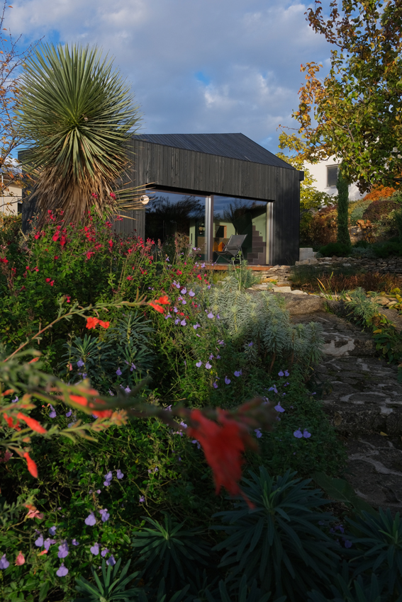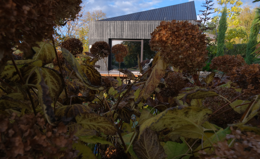 Das Gartenloft aus Holz ist mehr als ein Rückzugsort, es ist ein Raum, in dem Architektur, Innenarchitektur und Natur zu einer Erfahrung verschmelzen. Jeder Teil steht für sich, und ist authentisch: Die selbstbewusste Baukörperform, die Holzoberflächen und die klaren Linien stehen in einem stillen Dialog mit der Natur. Gerade durch diese Eigenständigkeit entsteht eine besondere Harmonie, die Innenraum und Garten verbindet. Licht, Farben und Stimmungen des Außenraums fließen durch großzügige Öffnungen in das Innere und spiegeln sich dort wider. So wird das Loft zu einem Ort, in dem die Natur Teil des Wohnens wird.