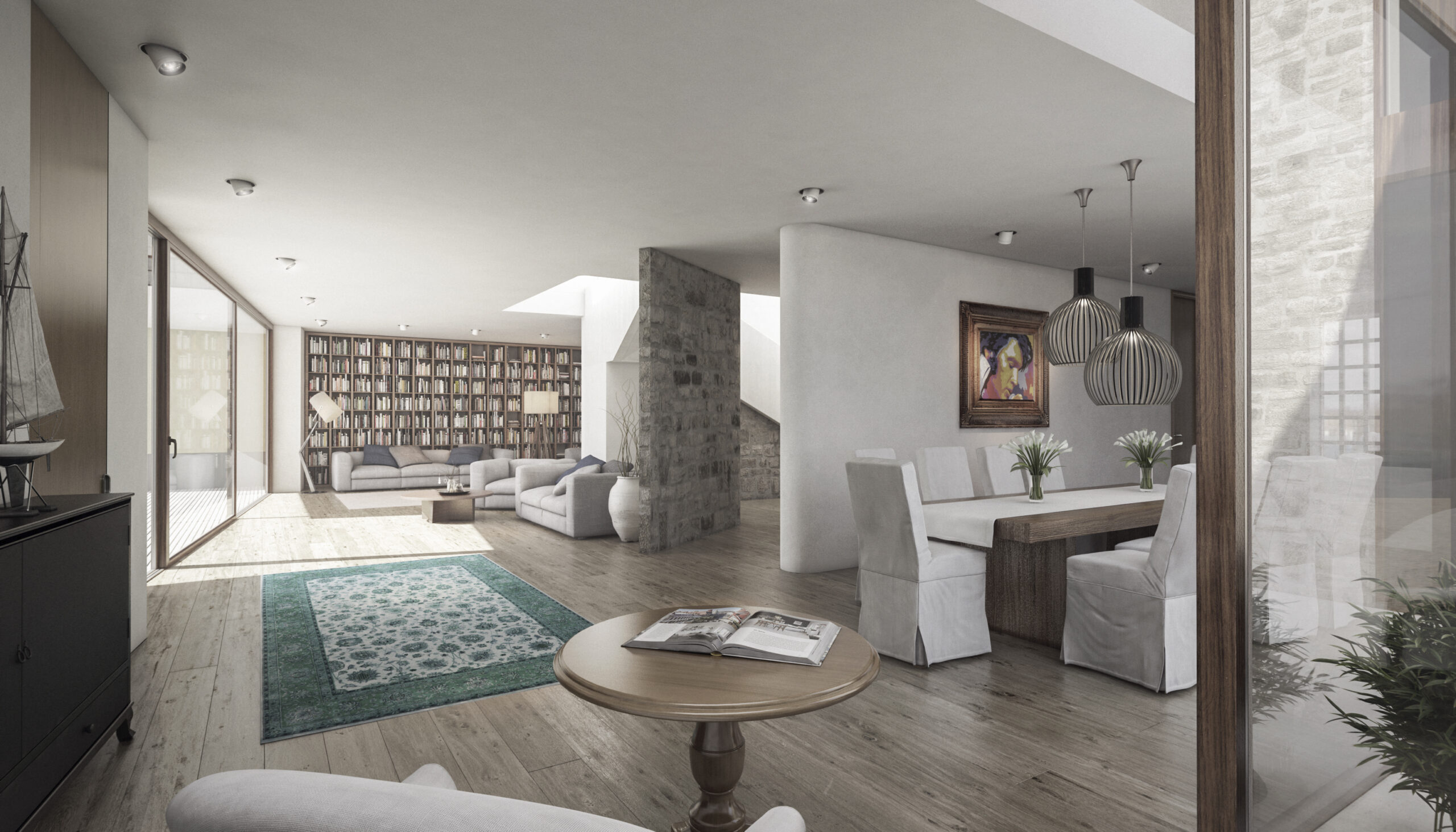 Durch dieses „Morphing“ entsteht eine spannungsvolle Verbindung zwischen Vergangenheit und Gegenwart: Der Eingangsbereich und die Stiegenanlage greifen das historische Vorbild auf, werden jedoch neu interpretiert und in ein offenes, zeitgemäßes Raumgefüge übergeführt.