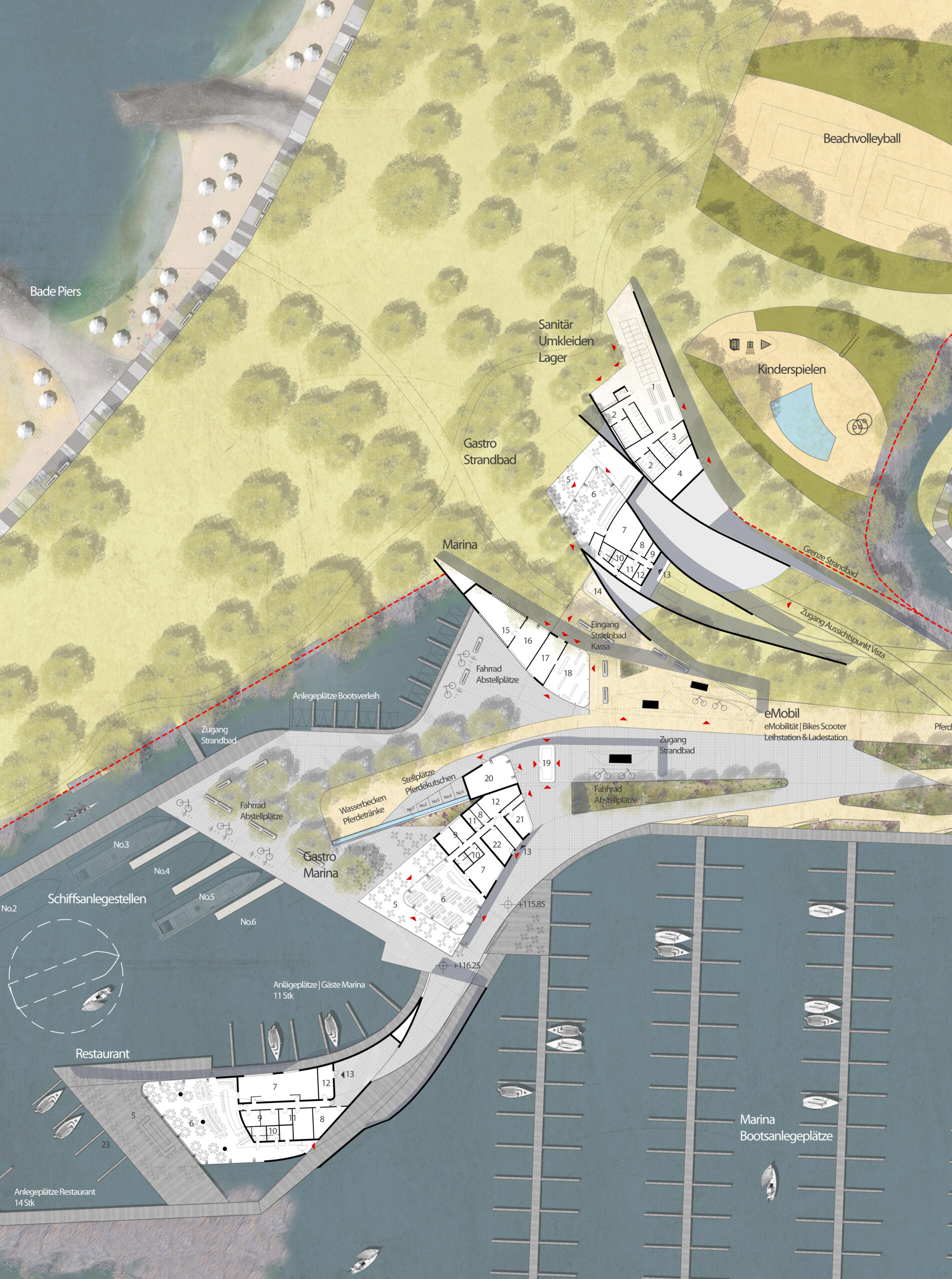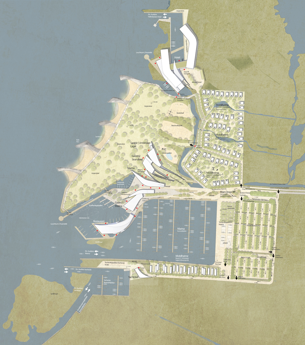 Gemeinsam mit Söhne & Partner Architekten entwickelt le scha den Wettbewerbsbeitrag Seebad Illmitz.